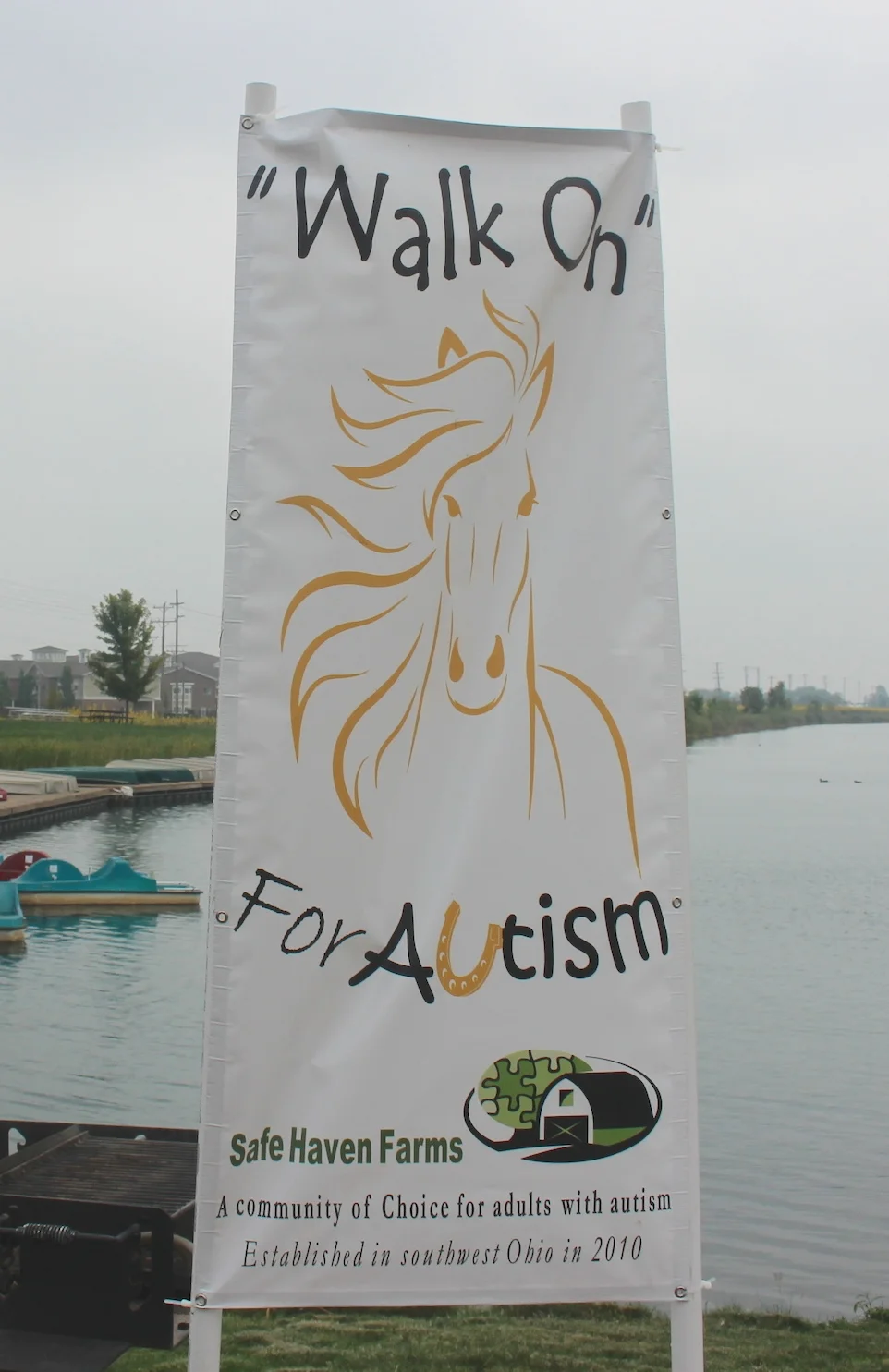 The second annual Walk On for Autism event was held on September 24 around the lake at Voice of America Park in West Chester. The fundraiser benefits Safe Haven Farms and highlights the therapeutic equestrian program for participants with autism. The event brought out 163 walkers on a beautiful Saturday morning. Walkers, sponsors, and volunteers enjoyed miniature horses, pumpkin painting, balloon animals, and treats donated by the parents of SHF participants. The event planning committee extends deep gratitude to our Gold, Silver, and Bronze sponsors! We look forward to seeing all our supporters at the walk next year.